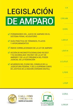 Ley de Amparo Reglamentaria de los Artículos 103 y 107 de la Constitución Política de los Estados Unidos Mexicanos Guía Práctica de Términos, Plazos y Apercibimientos de la Ley de Amparo Comentarios, Fundamento Constitucional, Correlaciones y Jurisprudencia (SCJN y Corte IDH) a la Ley de Amparo Bibliografía, Formularios y Diagramas Procesales Tratados Internacionales de los Derechos Humanos aplicables en México Pormenores del Juicio de Amparo en el Sistema Penal Acusatorio Aplicación Web para consulta de Legislación y Jurisprudencia relacionada en materia de Amparo